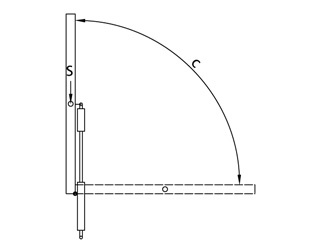 In this position, the center of gravity S is close to or directly in the pivot point. A low spring force is required.